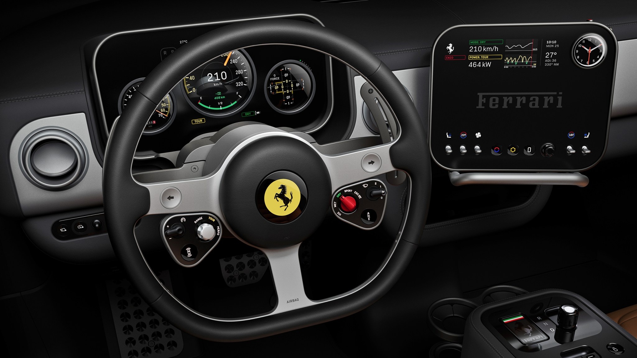 В противовес этой тенденции Ferrari выбрала кредо человеческого дизайна Джони Айва, чтобы перенести свое наследие классического итальянского бренда спортивных автомобилей в новую эру электромобилей без потери характера. Основные точки взаимодействия автомобиля и человека были сформированы путем оснащения Ferrari Luce"прецизионными механическими кнопками, циферблатами, тумблерами и переключателями" в качестве входов и"многофункциональными цифровыми дисплеями" в качестве выходов, хотя и с явно ретро-образным внешним видом.