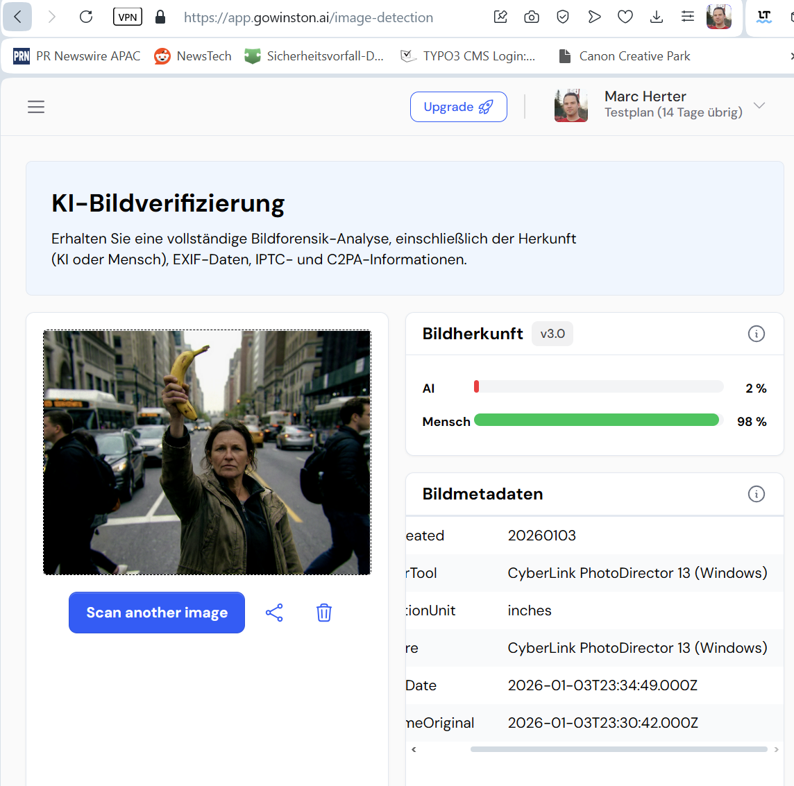 Последний шаг был решающим. Изображения ИИ часто бывают "слишком гладкими" и слишком идеальными в своем отсутствии шумов. Чтобы окончательно ввести детекторы в заблуждение, изображению требовалась искусственная "реальность", то есть типичные ошибки цифровой фотографии. С помощью Cyberlink PhotoDirector изображение было подвергнуто постобработке. Была добавлена небольшая коррекция объектива, искусственная хроматическая аберрация создала цветовые бахромы по краям, контрастность была увеличена, и, что самое важное, на пейзаж был наложен реалистичный шум. Цель заключалась в том, чтобы сделать изображение похожим на снимок с настоящей, несовершенной камеры. Все это было сделано в течение нескольких минут.