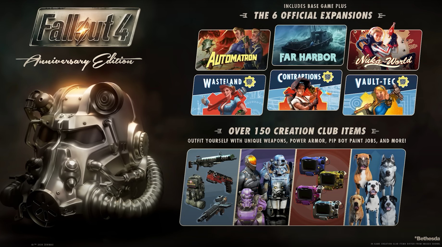 Согласно пресс-релизу, это первый случай, когда Fallout 4 выходит на консоли Nintendo. Игра, которую можно приобрести в цифровом виде в Nintendo eShop за $59,99, включает в себя базовую игру и шесть официальных дополнений. Также в игру включено более 150 творений, поскольку в версии игры для Nintendo Switch 2 меню творений отсутствует.