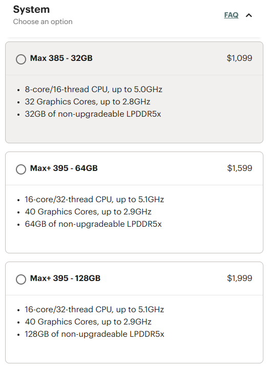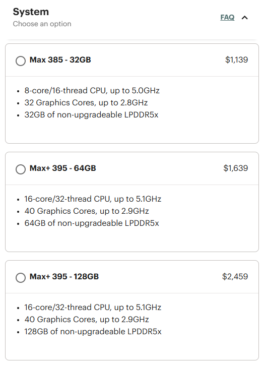 В своем блоге Framework подчеркнула что повышение цен происходит исключительно для того, чтобы компенсировать растущие производственные затраты. Примечательно, что младшие конфигурации с 32 Гб или 64 Гб оперативной памяти подорожали всего на 40 долларов. Модель, оснащенная Ryzen AI Max 385 и 32 Гб оперативной памяти теперь продается по цене $1 139, в то время как более дорогой вариант с Ryzen AI Max+ 395 и 64 ГБ оперативной памяти теперь стоит $1 639