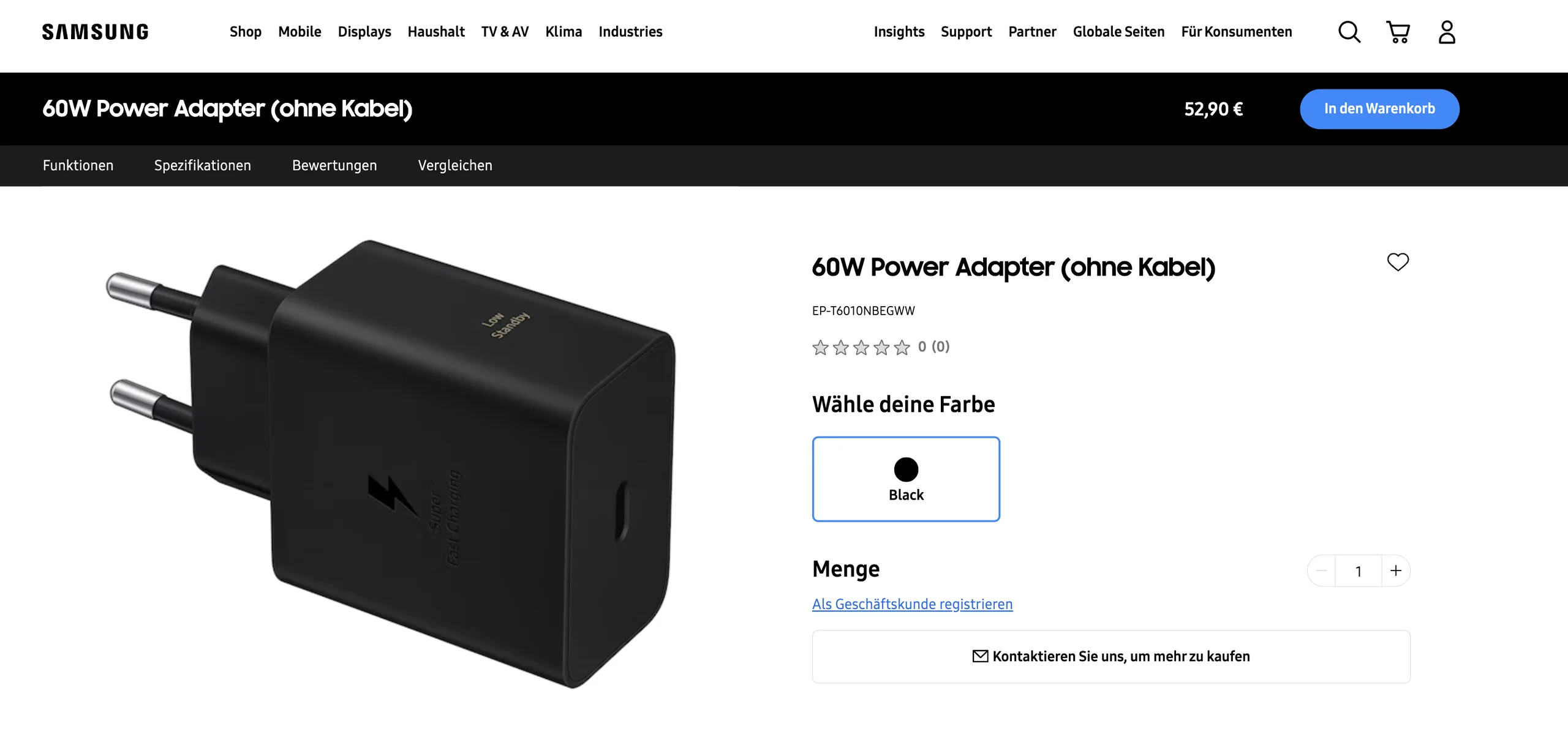Как показано на скриншоте ниже, CCC сертифицировал SM-S948 для зарядки до 60 Вт при 20 В/3 А. В связи с этим Samsung уже разместил список совместимых зарядных устройств на многих своих региональных сайтах. В частности, компания начала продавать EP-T6010NBEGWW с одним портом USB Type-C по цене €52,90 (~$62). Однако вероятность того, что Samsung будет поставлять это зарядное устройство в комплекте с Galaxy S26 Ultra, невелика.