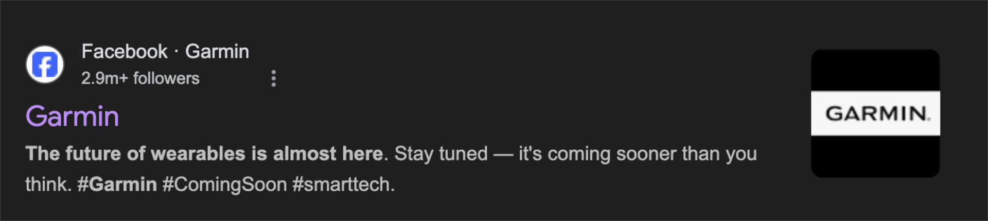 Теперь, недавнее сообщение на странице Garmin India в Facebook породило новые предположения о том, что компания разрабатывает некую альтернативу Whoop. По адресу the5krunner назвал Garmin Recovery Band и Gadgets & Wearables, среди прочих, неизвестное устройство не упоминается в сообщении Garmin на Facebook. Вместо этого компания сообщает, что "будущее носимых устройств уже почти наступило", и добавляет, что оно "наступит раньше, чем Вы думаете".