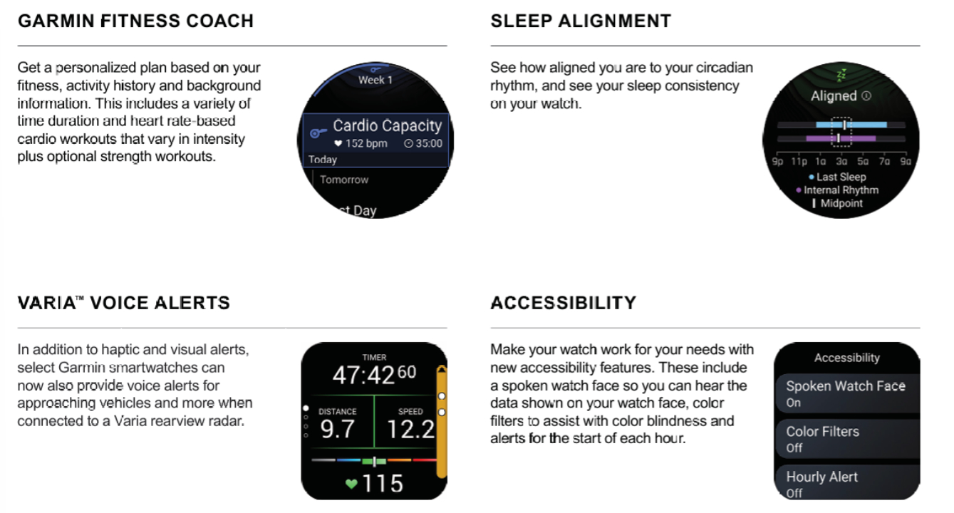 В своем последнем обновлении Feature Update компания Garmin сосредоточилась на семи новых функциях. Например, функция Garmin Fitness Coach будет распространена на другие смарт-часы после дебюта на Venu 4 (сейчас $549 на Amazon). Среди других улучшений - голосовые оповещения Varia, спортивные результаты и функция планирования курса. Кроме того, Garmin добавила возможность узнать, насколько Вы соответствуете своему циркадному ритму, с помощью функции под названием Sleep Alignment.