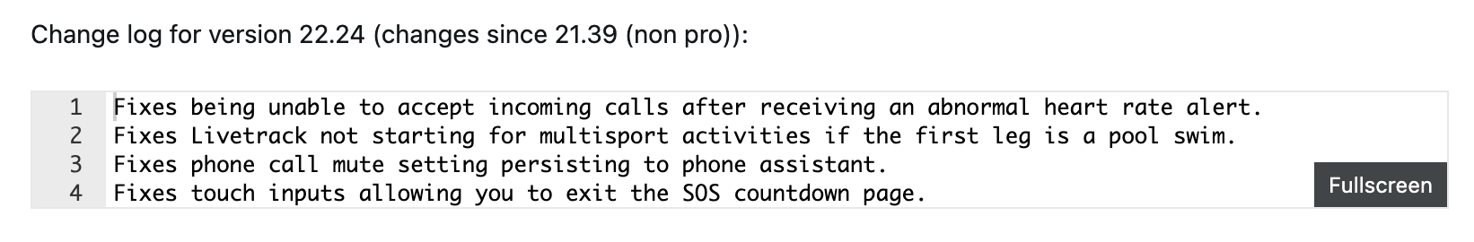 В бета-версии 22.24 компания Garmin исправляет проблему, связанную с новой функцией LiveTrack. Была решена проблема, когда он не запускался автоматически для мультиспортивных мероприятий, в частности, тех, которые начинались с плавания в бассейне. В этом обновлении компания также исправила ошибку, из-за которой пользователи не могли принять входящий звонок после оповещения о ненормальном сердечном ритме. Кроме того, были решены проблемы с настройкой отключения звука телефонного звонка и страницей обратного отсчета SOS.