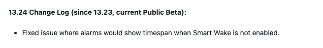 Согласно сообщению на форуме Garminв бета-версии 13.24 решена проблема, связанная с будильником Smart Wake. Эта функция позволяет Instinct 3 и другим смарт-часам пытаться разбудить Вас в оптимальное время, основываясь на Вашем цикле сна. Вместо того, чтобы устанавливать точное время пробуждения, будильник Smart Wake сработает в определенный момент в пределах 30-минутного окна. Теперь Garmin устранил проблему, когда пользователи могли видеть временной интервал для стандартного будильника, несмотря на то, что функция Smart Wake была отключена.