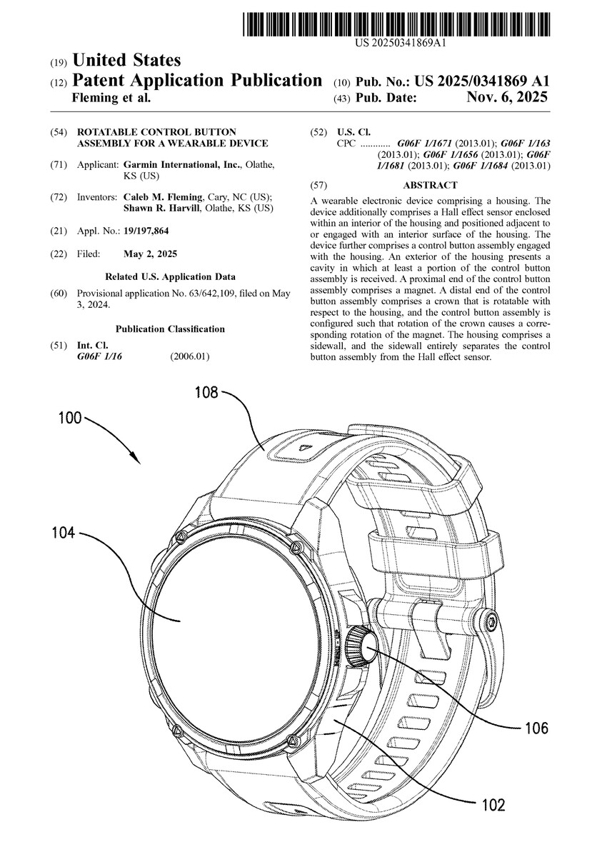 Изначально мы подозревали, что источником выводов Gadgets & Wearables является недавний патент. К сожалению, Justia и другие сопоставимые сайты не выдали никаких соответствующих результатов. Однако теперь Wearable обнаружил патент, который, похоже, подтверждает большую часть предыдущих утверждений Gadgets & Wearables. Поданный как "вращающаяся кнопка управления в сборе для носимого устройства" под патентным номером 20250341869garmin описывает кнопку управления следующим образом: