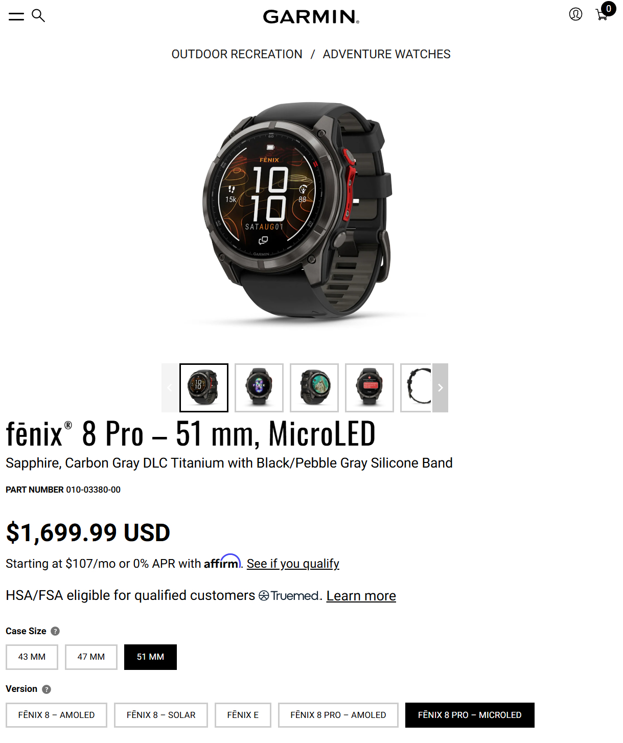 Изначально между 51-миллиметровыми версиями Fenix 8 Pro с AMOLED- и MicroLED-дисплеями существовал разрыв в $800. В результате, единственным способом приобрести новую технологию ультраяркого дисплея от Garmin было выложить $1 999,99.