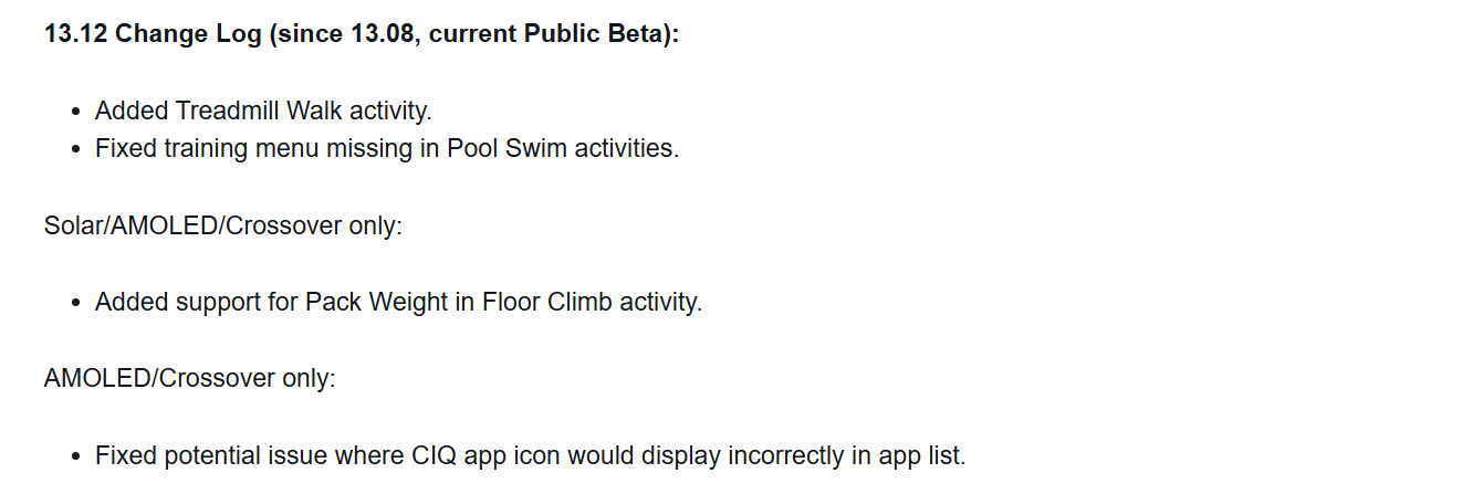 В бета-версии 13.12 пользователи Garmin Instinct 3 и других смарт-часов получили новый тип активности Treadmill Walk. Кроме того, была решена проблема, связанная с меню тренировок для занятий в бассейне (Pool Swim). Остальные изменения в этом выпуске касаются определенных групп пользователей.