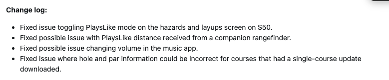 В системном ПО 8.04 компания Garmin исправляет еще четыре ошибки в смарт-часах Approach S44 и Approach S50. Первое устраняет проблему с режимом PlaysLike, с которой столкнулись пользователи S50: тумблер на экране опасностей и подборов работал не так, как ожидалось. Второе, предназначенное для всех пользователей, устраняет проблему с расстоянием PlaysLike, полученным от подключенного дальномера.