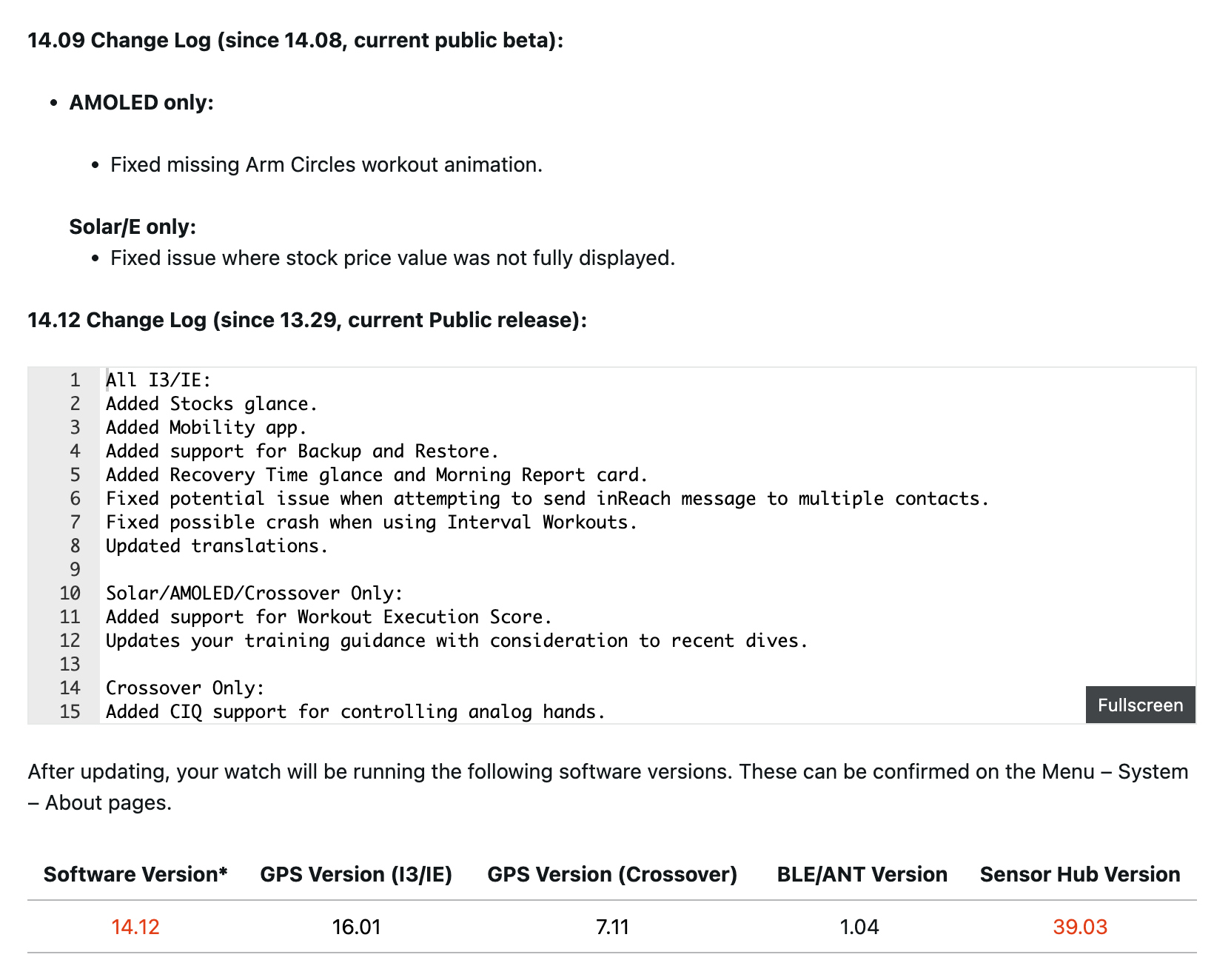 Вместо этого компания ссылается на тот же самый список изменений, который она включила в Бета-версию 14.09. Тем не менее, многочисленные сообщения на публичном канале Garmin об ошибках указывают на то, что версия 14.12 страдает от многих из тех же ошибок, что и более ранние прошивки.
