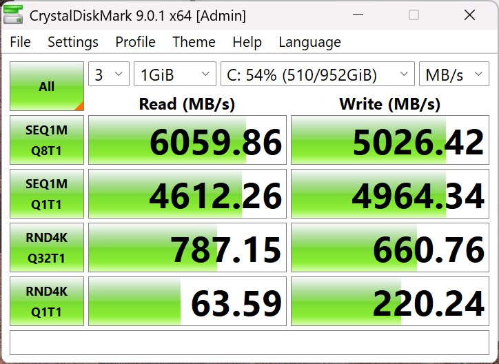 Geekom A8 оснащен твердотельным накопителем Lexar емкостью 1 ТБ (PCIe 4.0 x4), который впечатляет высокой скоростью передачи данных и быстрым временем доступа. Таким образом, мини-ПК обеспечивает очень высокую повседневную и системную производительность. Пассивное охлаждение также обеспечивает практически постоянную производительность даже при длительной нагрузке.