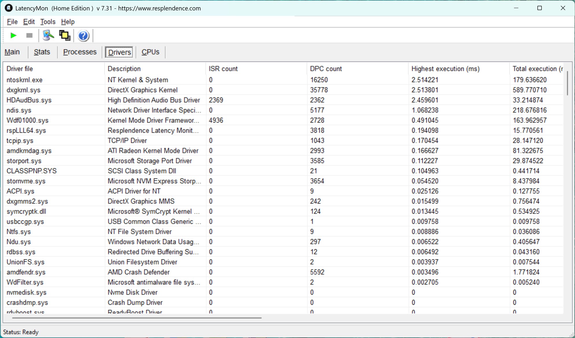 | DPC Latencies / LatencyMon - interrupt to process latency (max), Web, Youtube, Prime95 | |