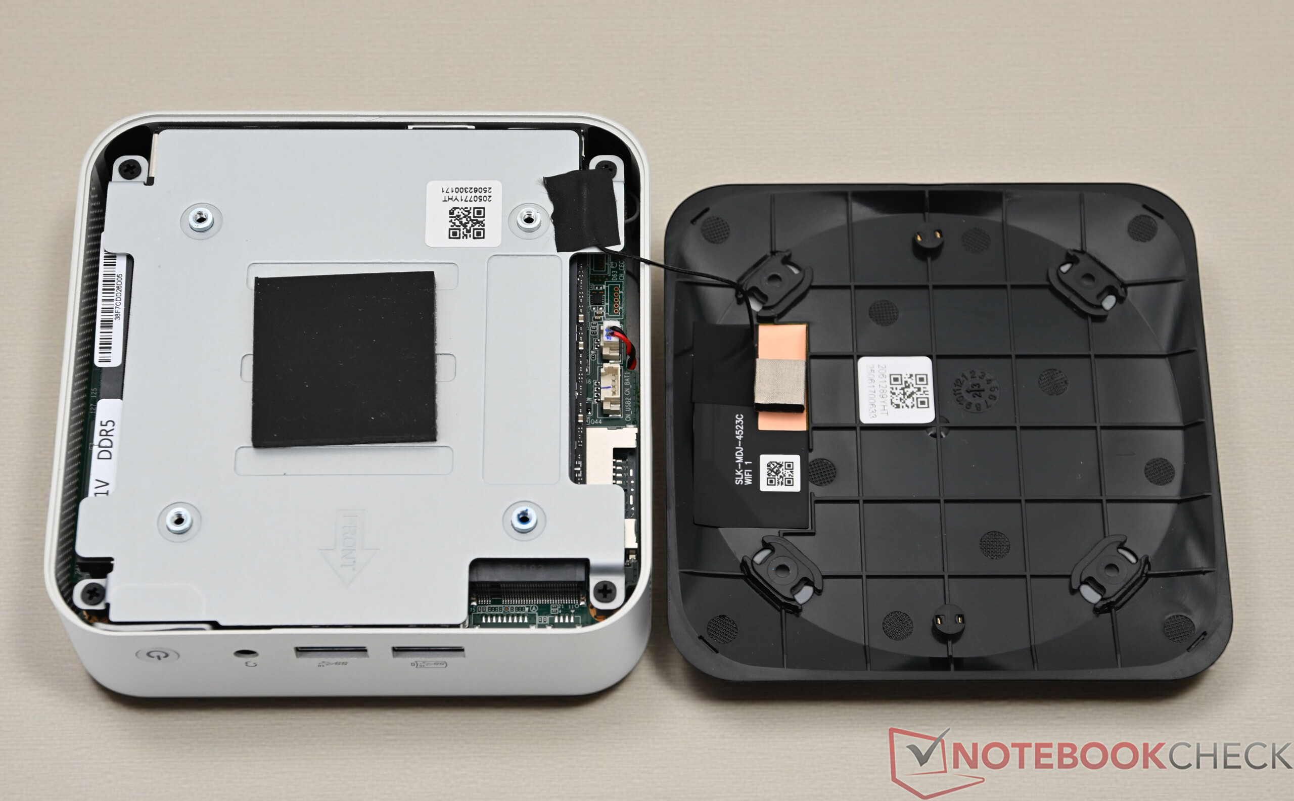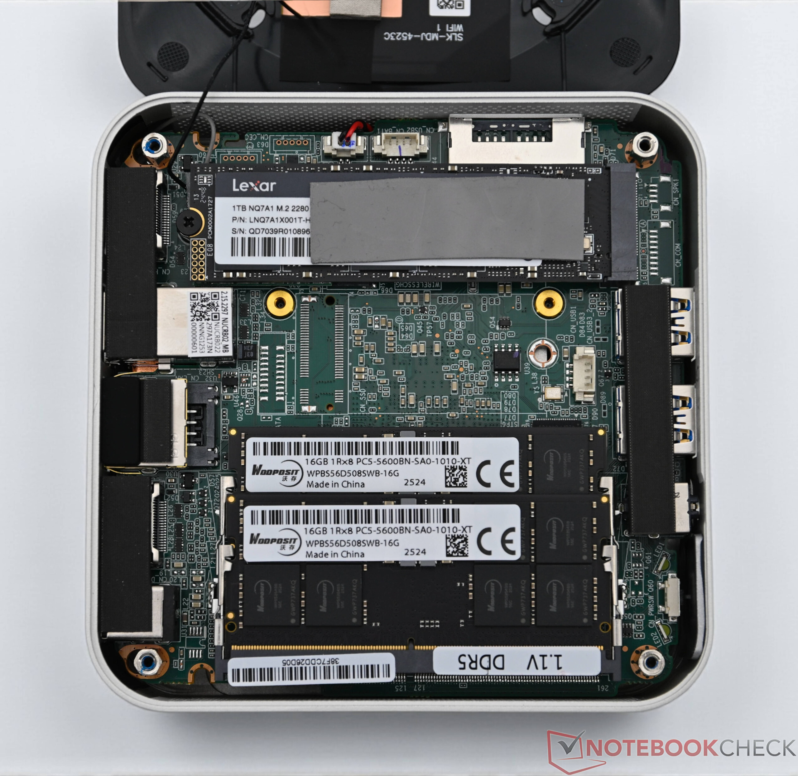 Geekom A8 всегда поставляется с предустановленными оперативной памятью и твердотельным накопителем, поэтому он готов к немедленному использованию. Модернизация возможна, но требует некоторой сноровки при открытии компактного корпуса. Более подробную информацию можно найти в тесте идентичной модели с более быстрым APU.