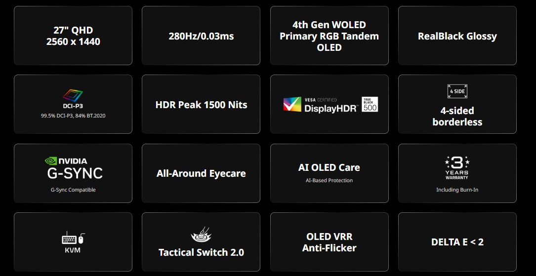 Gigabyte анонсировала MO27Q28GR наряду с тремя другими OLED-мониторами, включая ультраширокий MO34WQC36 с Новой QD-OLED панелью Samsung с V-полосой 360 Гц и MO32U24 с QD-OLED-панелью 4K 240 Гц. Таким образом, модель MO27Q28GR теперь присоединяется к Asus ROG Strix XG27AQWMG как единственные игровые мониторы Tandem OLED с частотой 280 Гц и глянцевым покрытием.