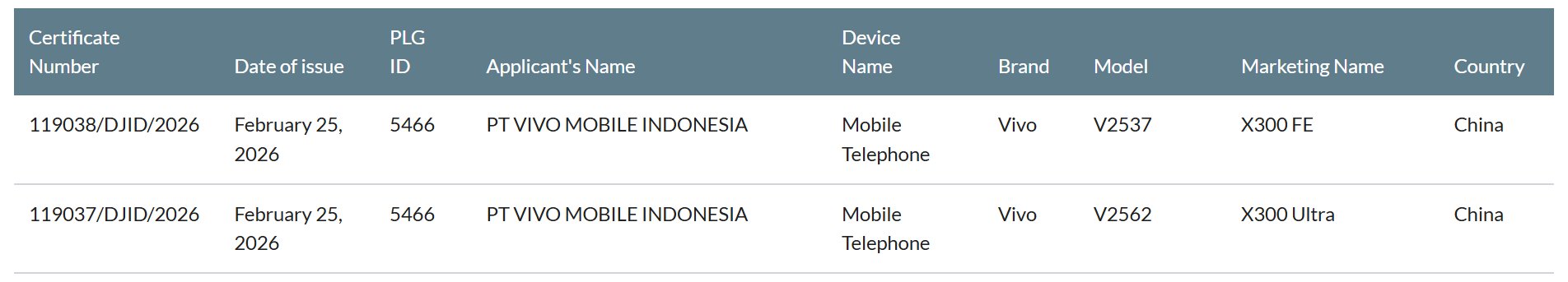 Теперь устройство получило сертификат SDPPI Индонезии. Листинг подтверждает, что номер модели "V2562" принадлежит глобальному варианту Vivo X300 Ultra.
