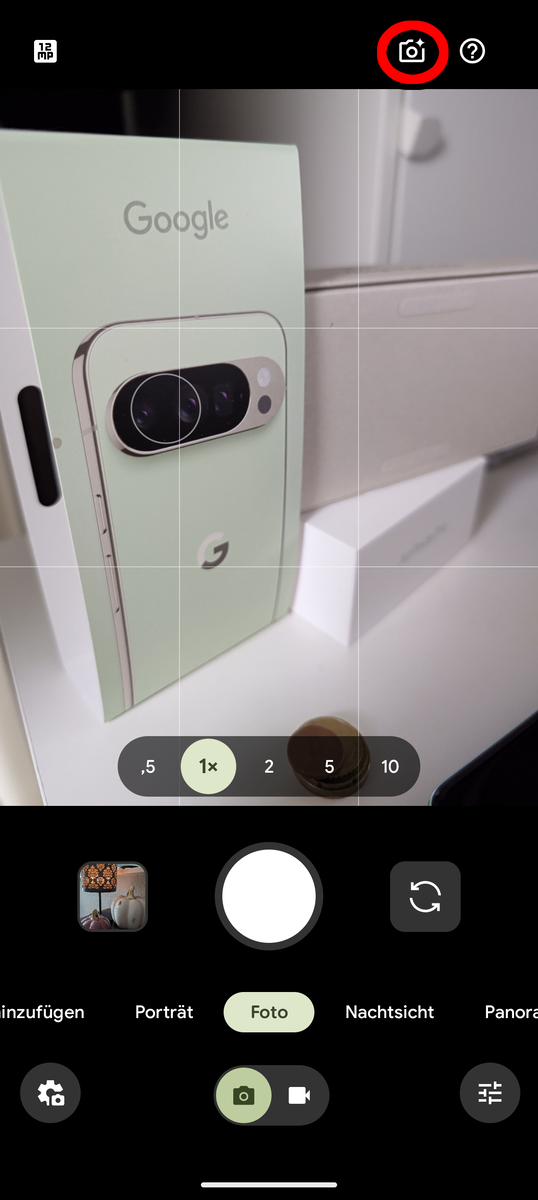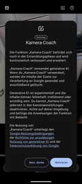 Сначала ее нужно активировать в настройках, а затем можно использовать с помощью маленького значка камеры AI в приложении камеры. Как только значок нажимается, алгоритм анализирует изображение с камеры в реальном времени, что происходит в облаке. Затем тренер предлагает Вам выбор возможных композиций изображения и проводит Вас через весь процесс в несколько шагов, которые мы обобщили здесь в виде серии изображений, включая результат (последнее изображение):