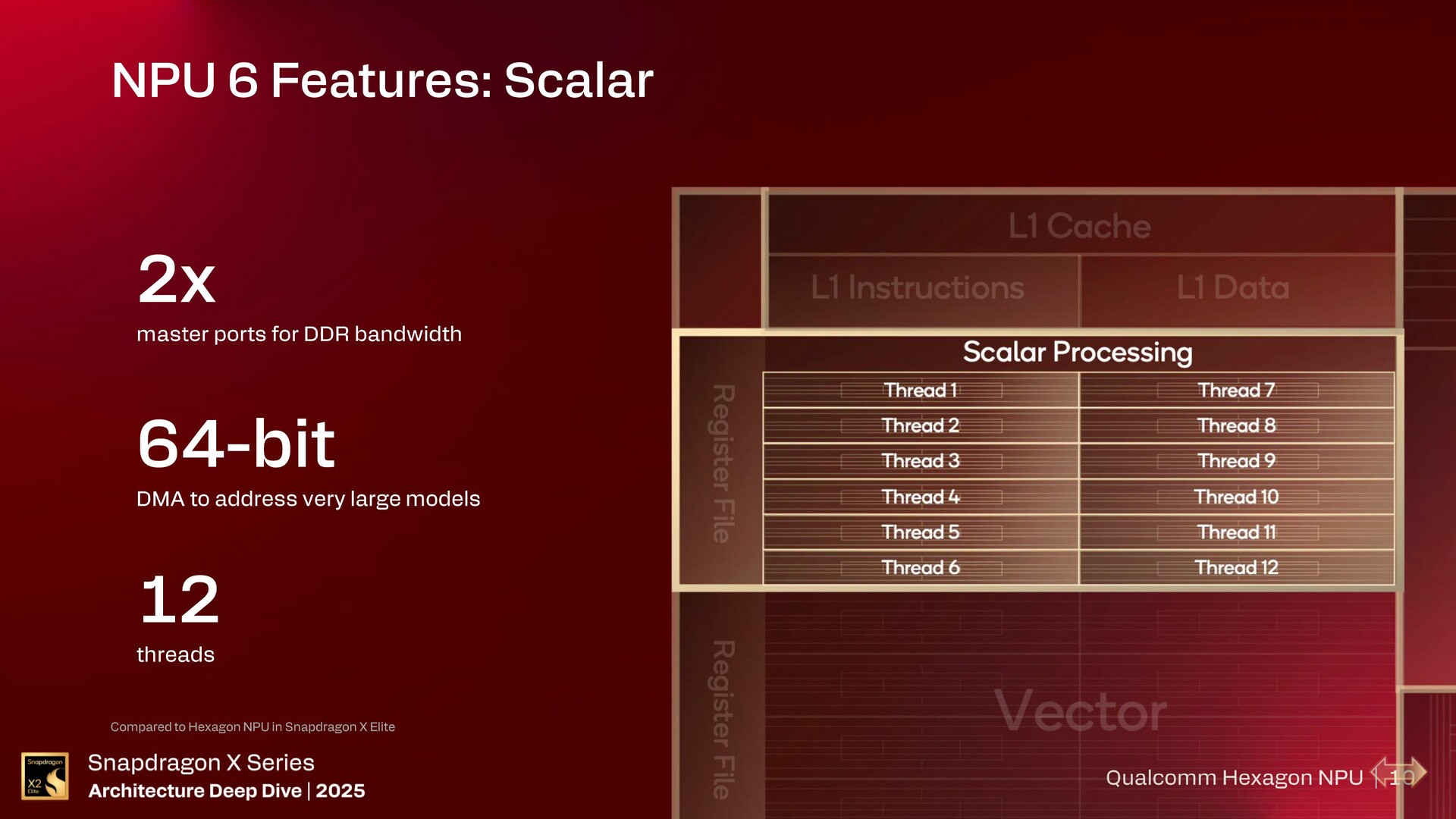 Компания Qualcomm подробно рассказала о том, как Hexagon изначально начинал как цифровой сигнальный процессор, который в основном занимался скалярной обработкой, а затем превратился в нынешнюю форму NPU 6, которая также выполняет векторное ускорение, ускорение целочисленных и FP16 матриц.