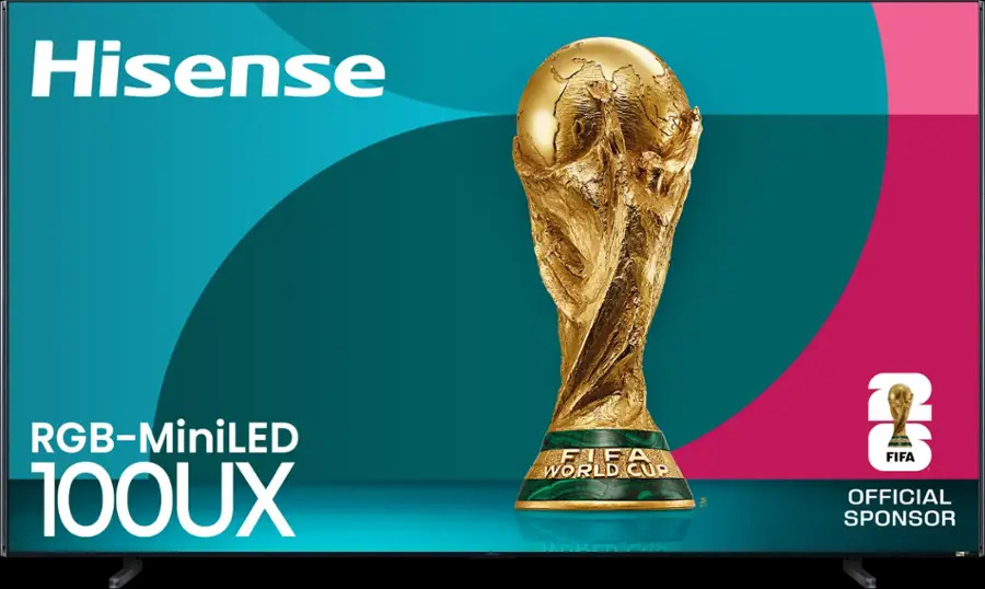 В проекторе Hisense 100UX используется технология RGB-Mini LED, управляющая красной, зеленой и синей зонами локального затемнения для более точной цветопередачи и высокой пиковой яркости. Она достигает яркости до 8 000 нит и воспроизводит 100% цветового пространства BT.2020. Панель имеет собственную частоту обновления 165 Гц, низкую задержку MEMC и поддержку полного набора форматов HDR, включая Dolby Vision IQ, HDR10+ и Filmmaker Mode. Процессор Hi-View AI Engine X (также основанный на MediaTek Pentonic 800 SoC) обрабатывает изображение и звук. Аудиосистема является 4.1.2-канальной, а интеллектуальные функции встроены в Google TV. Розничная цена составляет $11 999.