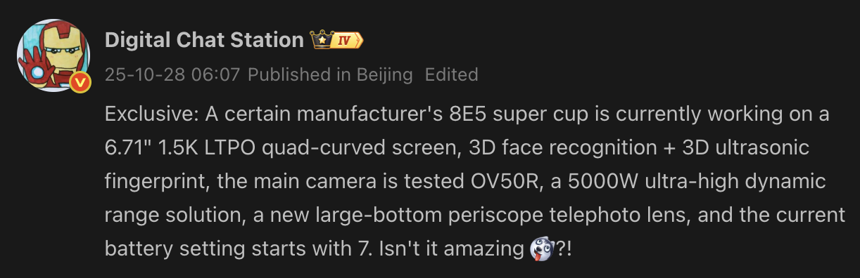 Новая утечка от типстера Digital Chat Station намекает на технические характеристики грядущей флагманской модели, которая, как сообщает GSMArena сообщает, что это, скорее всего, Magic 8 Ultra. По словам типстера, грядущий телефон может быть оснащен 6,71-дюймовым изогнутым LTPO OLED дисплеем с разрешением 1,5K. Это меньше, чем у Magic 7 RSR Porsche Design, который оснащался 6,8-дюймовой панелью.