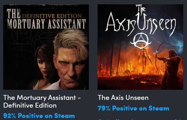 - The Mortuary Assistant - Definitive Edition: В этой игре ужасов от первого лица от DarkStone Digital Вы играете роль Ребекки, ученицы в морге, работающей в ночную смену. Определенное издание добавляет новый режим, новые события и многое другое. The Mortuary Assistant стоит $24,99 в Steam и имеет около 8000 отзывов (79% положительных).