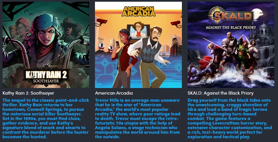 - Kathy Rain 2: Soothsayer - продолжение первой игры серии "point-and-click", вышедшей в 2025 году. Эта игра для Steam Deck Playable в настоящее время имеет 96% положительных оценок игроков и обычно продается за $19,99.