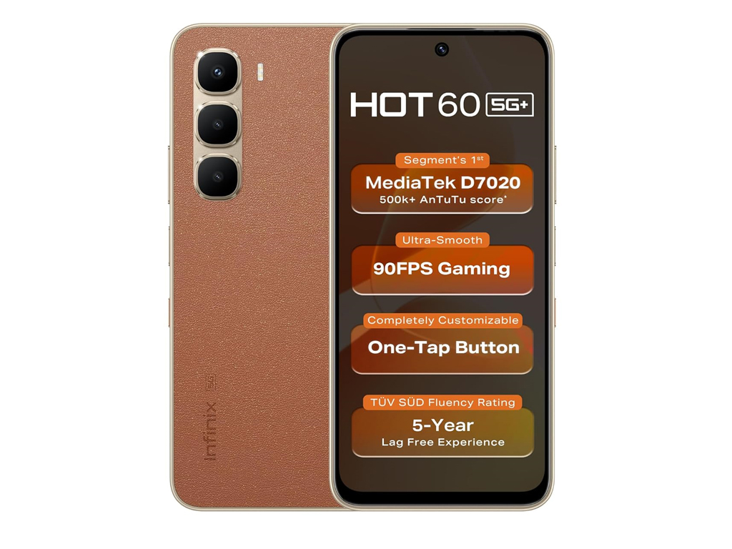 EN→RUThe Infinix Hot 60, launched in July 2025, is a budget-friendly 5G smartphone with a balance of modern features at an affordable price. It sports a 6.7-inch IPS LCD display with a 120Hz refresh rate, 720 × 1600 resolution, ~262 ppi density, and up to 700 nits brightness, making it suitable for media consumption. At 193g and 7.8mm thin, the phone feels sleek and lightweight. The device is powered by the MediaTek Dimensity 7020 (6nm) chipset with an octa-core CPU and IMG BXM-8-256 GPU. It comes with 6GB RAM and 128GB UFS storage, which can be expanded using a microSD card. It has a dual-camera setup with a 50MP main sensor, though Infinix has not specified details about the secondary lens. For video recording, it supports up to 1440p at 30fps. It also features an 8MP selfie camera with an LED flash, which is a nice touch for low-light shots. Durability is a highlight, with an IP64 rating for dust and splash resistance.