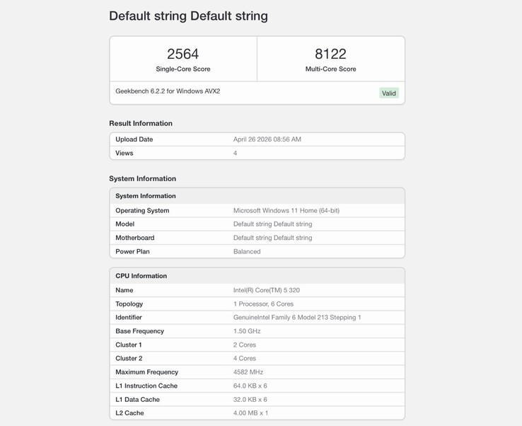 Первые ноутбуки с Intel Core 5 320 уже прошли бенчмаркинг на сайте Geekbench. Набрав 2 564 балла за один поток и 8 122 балла за многоядерность, этот чип почти вдвое быстрее более дешевого AMD Ryzen 5 7520Uно при этом на 11,1% медленнее, чем Apple MacBook Neo(589 долларов на Amazon). На Intel Core Ultra 5 325 на 36% мощнее