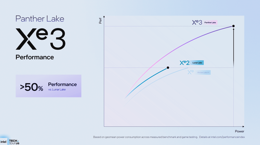Что касается производительности, то Intel сделала несколько громких заявлений о производительности iGPU Panther Lake. Утверждается, что он предлагает до 50% прироста производительности по сравнению с Lunar Lake и 40% прироста производительности на ватт. Как всегда, это бенчмарки от первого лица, и к ним следует относиться скептически, пока не появится больше данных.