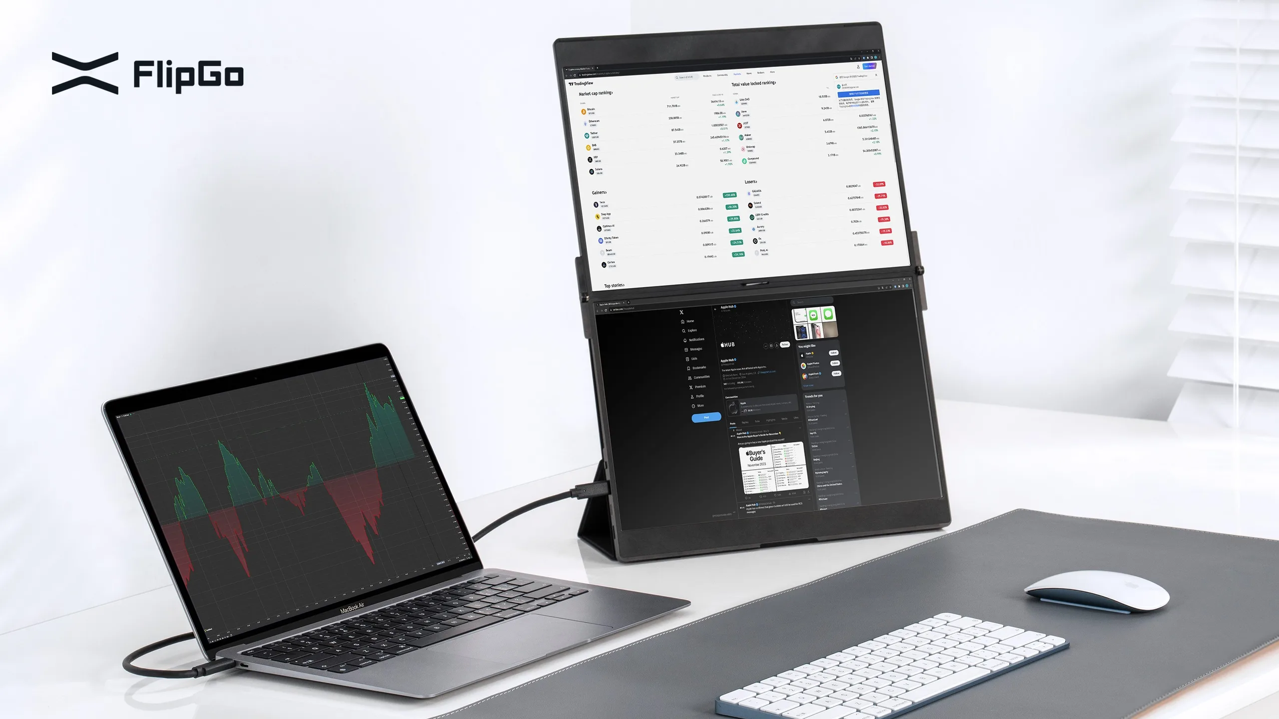 JSAUX FlipGo Lite имеет такой же премиальный инновационный дизайн с двумя внешними мониторами с одним кабелем, как и его братья и сестры, но, как утверждается, он еще более портативен, чем его 16-дюймовый Pro аналог.