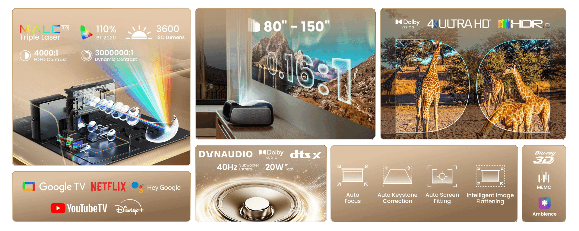 Компания Jmgo внедрила в O2S Ultra свою фирменную трехлазерную систему MALC 3.0, которая, как утверждается, обеспечивает яркое и четкое изображение в формате 4K, покрывая 110% цветового охвата BT.2020. Кроме того, он работает с Google TV из коробки и предлагает доступ к широкому спектру потоковых сервисов, таких как Netflix, YouTube, Amazon Prime, Hulu, Disney+ и др. Кроме того, устройство поддерживает голосовые команды Google Assistant и беспроводное подключение Google Cast через смартфон.