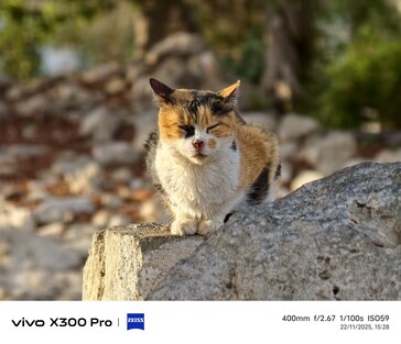 С помощью телеконвертера Vivo X300 Pro 3,7-кратный телеобъектив можно превратить в 8,7-кратный. Это решение более громоздкое, но оно дает похожий эффект. Ниже представлены снимки, сделанные при оптическом 8,7- и 10-кратном зуме; второй портрет кошки был снят при 17,4- и 20-кратном зуме, соответственно.