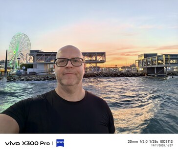 Я не очень люблю делать селфи, но в интересах науки я сделал несколько селфи в разных местах и при разном освещении. На мой взгляд, Vivo X300 Pro значительно улучшился в плане качества селфи по сравнению с Vivo X200 Ultra. В большинстве случаев последний флагман Vivo обеспечивает наиболее естественное изображение из всего квартета, не только благодаря заметно более широкому полю зрения, но и в отношении оттенков кожи - по крайней мере, в моем случае. Однако в последнем примере, когда источником подсветки служит закат, Vivo X300 Pro также испытывает некоторые трудности.