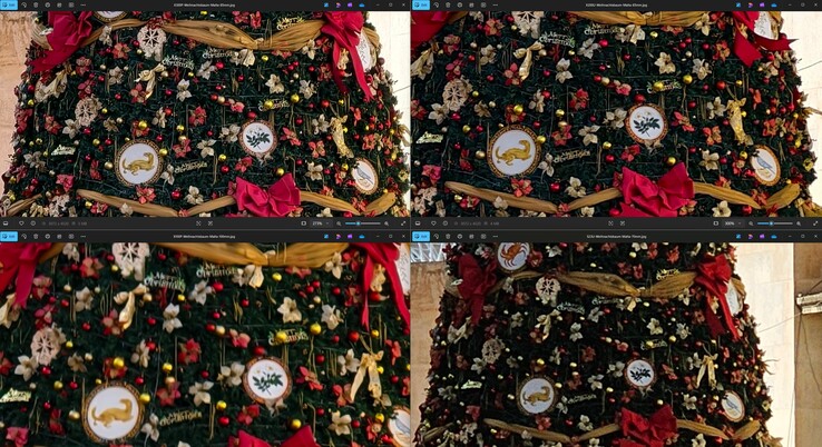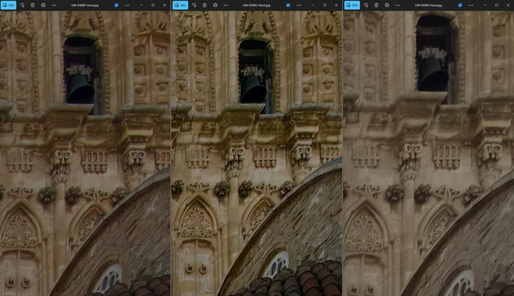 При 300-процентном увеличении 12-мегапиксельных снимков 200-мегапиксельная матрица Galaxy S23 Ultra сохраняет наименьшее количество деталей. Vivo X200 Ultra с небольшим отрывом опережает Vivo X100 Pro, показывая, что 1-дюймовый сенсор все еще имеет здесь преимущество. По крайней мере, Vivo X300 Pro не оказался на последнем месте.
