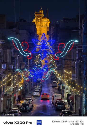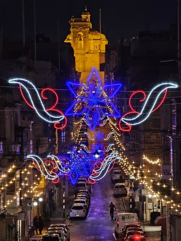 Мальта перед Рождеством - это особый опыт. Вместо снега во многих частях города можно увидеть улицы с иногда очень сложным рождественским освещением, что также является хорошим поводом для тестирования ночного режима с рук - например, на Triq Il-Vitorja в Сенглеа или вдоль главной артерии в Валлетте, которая была переполнена в вечернее время. Это довольно сложные условия для теста с 10-кратным зумом. При наличии штатива, конечно, можно было бы добиться значительно лучших результатов.