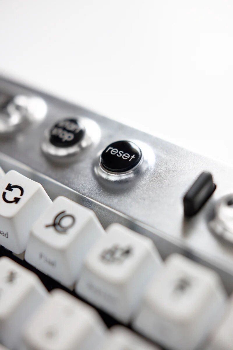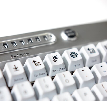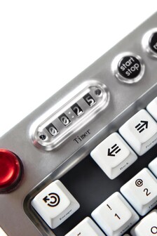 Второй дисплей - это так называемый словометр, который представляет собой счетчик слов, показывающий, сколько слов было набрано с момента последнего сброса. Кнопка "старт-стоп" позволяет пользователям в любой момент приостановить работу вордометра, чтобы он не засчитал, например, веб-поиск или сообщение в чате. Оба дисплея используют колесики, которые вращаются мотором, чтобы показывать соответствующие цифры от 0 до 9. Это позволяет не только отображать информацию, но и тактильно и на слух отслеживать прогресс в написании текста.