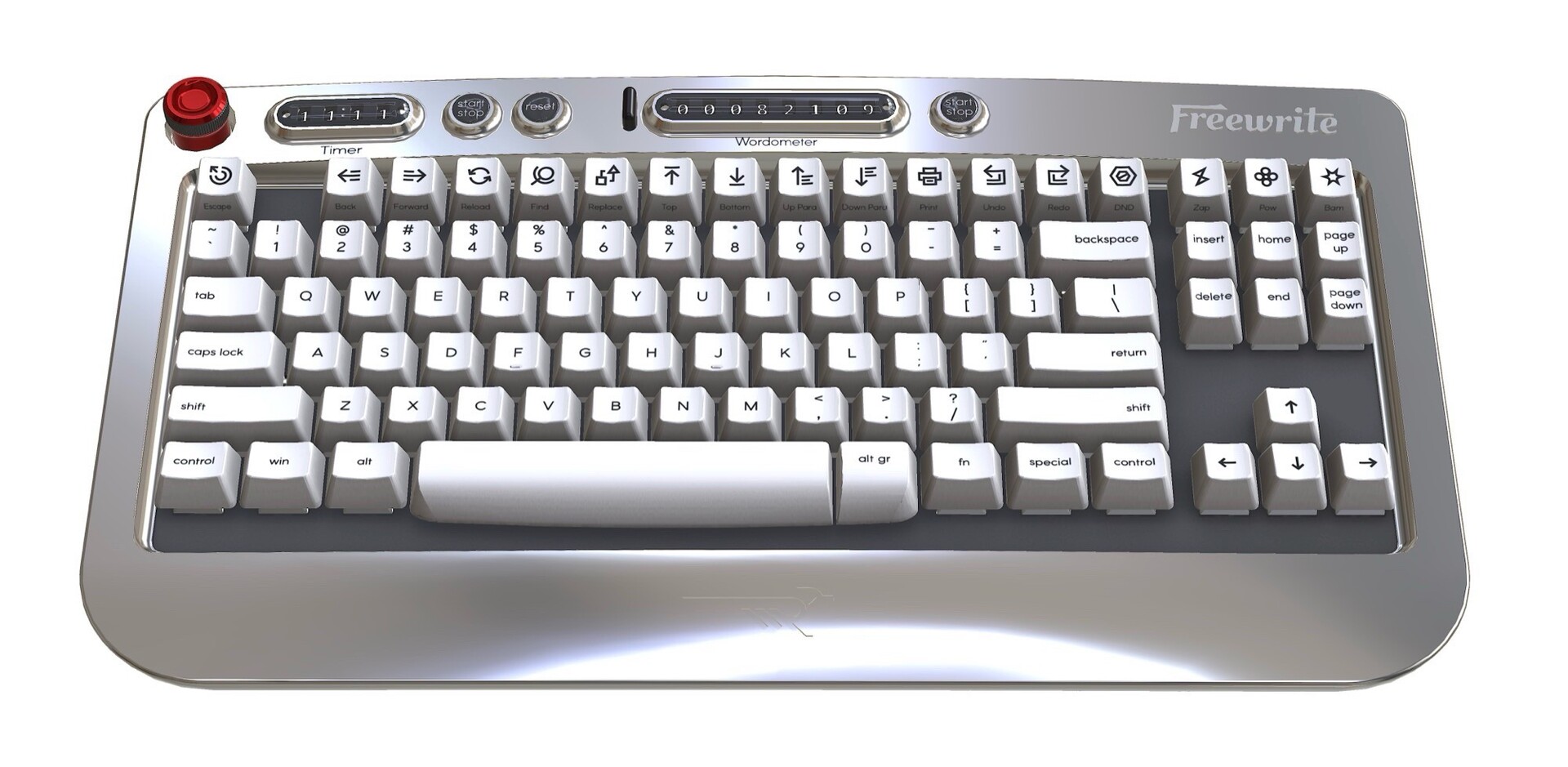 Традиционные клавиши F были заменены на функциональные клавиши, которые специально созданы для писателей и могут использоваться, в частности, для быстрого поиска и замены контента. Между тем, джойстик в левом верхнем углу клавиатуры управляет воспроизведением музыки. Корпус Freewrite Wordrunner выполнен из алюминия, а переключатели и клавиши можно впоследствии поменять местами. Freewrite заявляет, что Wordrunner не требует специальных драйверов и совместима со всеми устройствами, поддерживающими Bluetooth или USB-клавиатуры. Ожидается, что в зависимости от условий использования батарея прослужит около месяца.