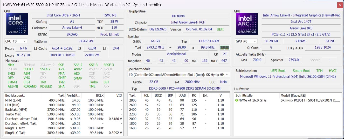 | HP ZBook 8 G1i 14 Intel Core Ultra 7 255H ⎘ Intel Arc Graphics 140T ⎘ 32 Гбайт ОЗУ, 1024 Гбайт SSD | Amazon: $2,964.88 Прейскурантная цена: 1860 Euro | 1.7 килог. | 23 мм | 14.00" 2560x1600 216 PPI IPS LED | |
