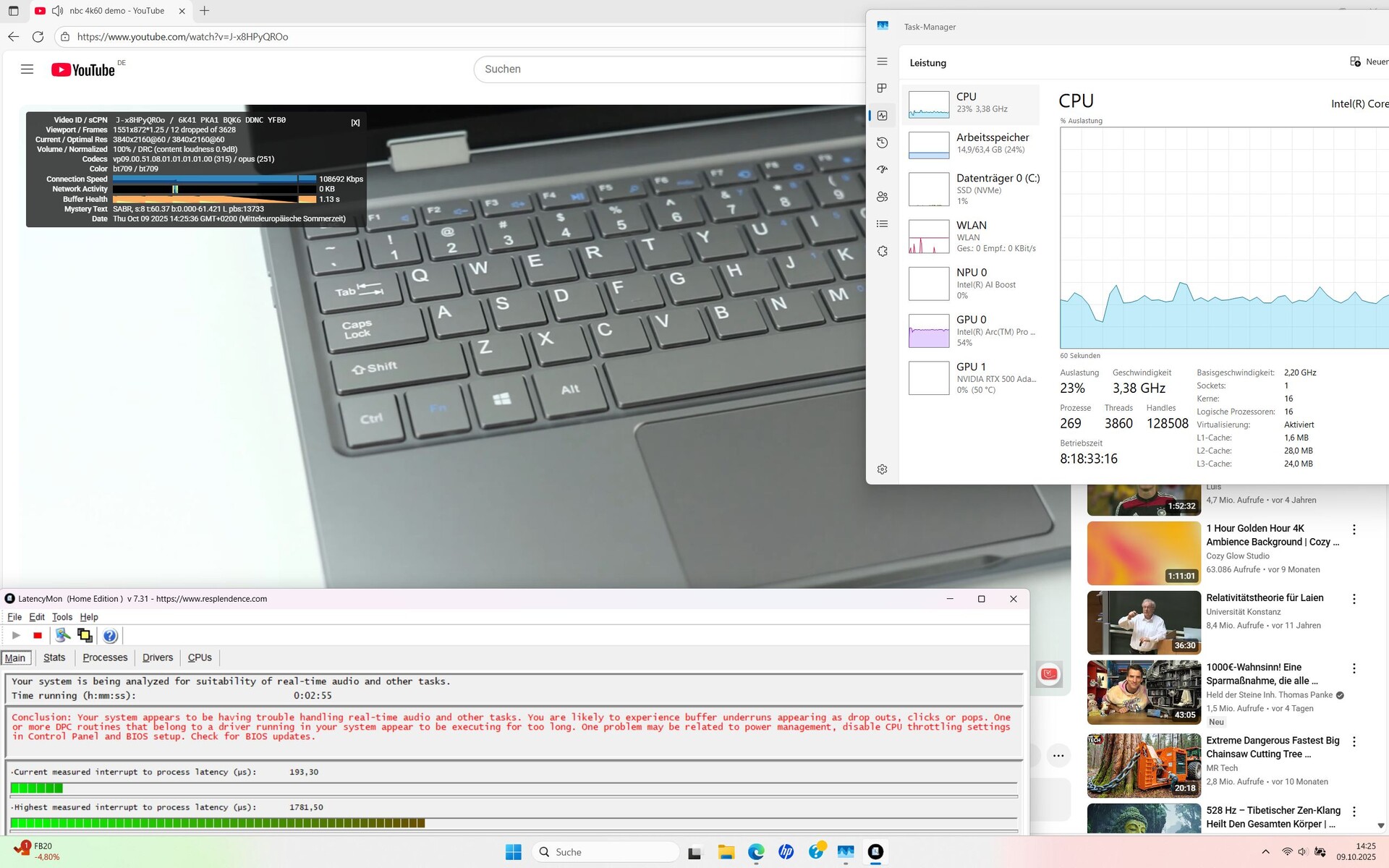 Общие результаты процессора очень хорошие, хотя чип не намного быстрее, чем Core Ultra 7 255H в нашей предыдущей тестовой конфигурации. На сайте ZBook Ultra G1a с Ryzen AI Max PRO 390 по-прежнему сохраняет явное превосходство.