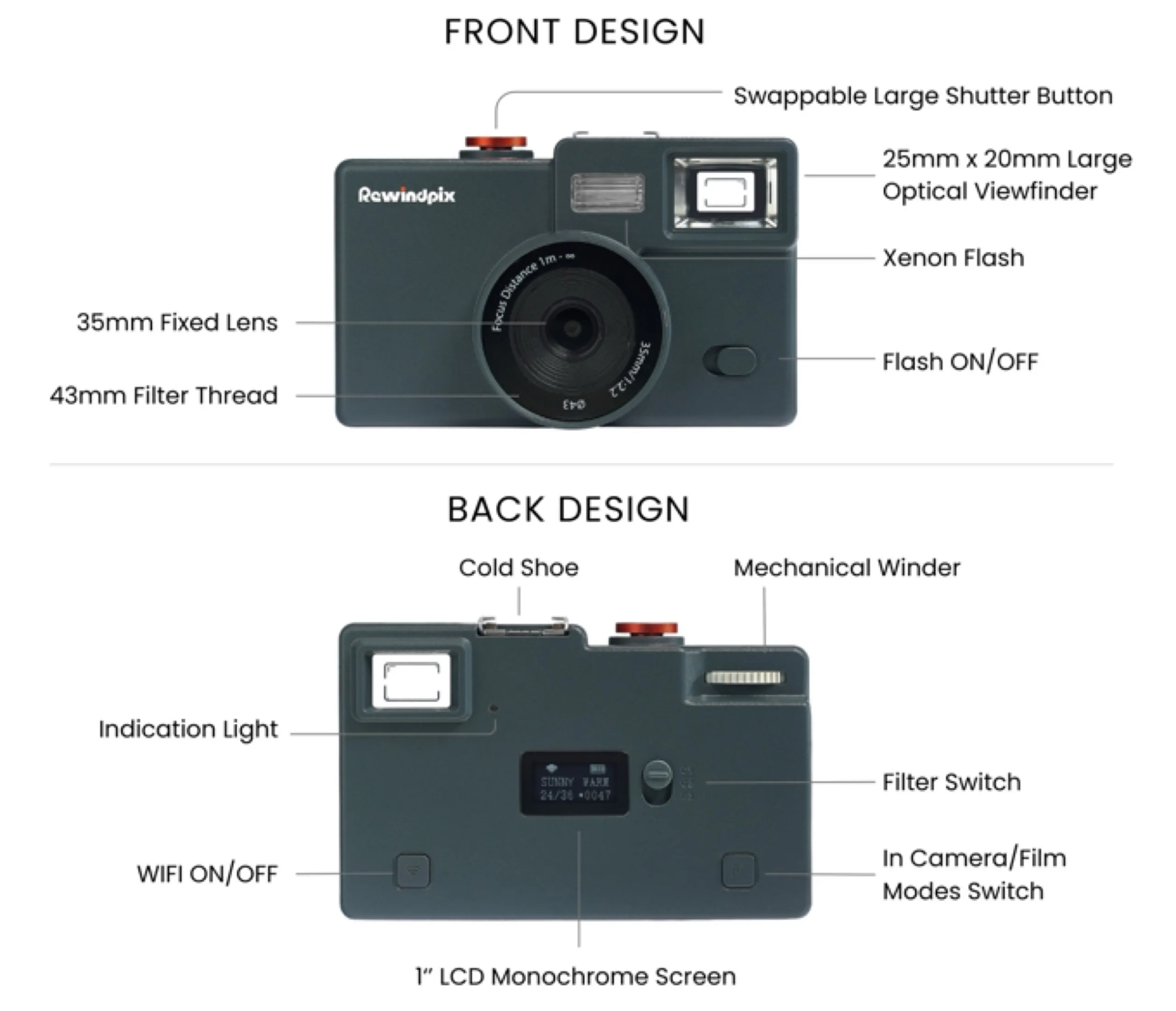 Компактная камера Rewindpix предлагает оптический видоискатель, вспышку и 35 мм объектив за 119 долларов