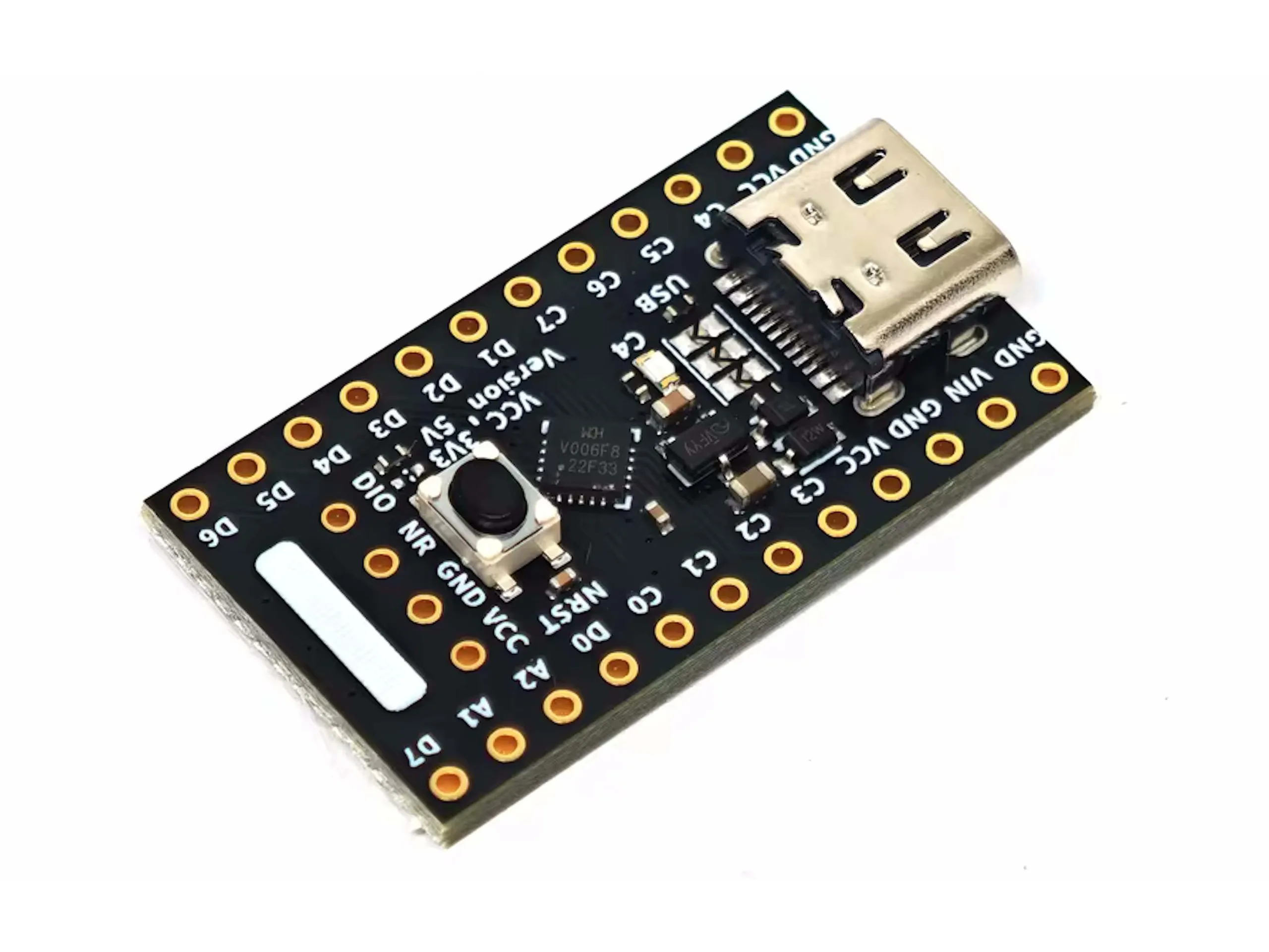 Вместо этого он предназначен скорее для подключения различных датчиков и исполнительных устройств. Одним из очень простых вариантов использования может быть управление несколькими светодиодами на основе показаний датчиков. Для этого WeAct CH32V006F8U6 оснащен двумя 12-контактными разъемами, что оставляет достаточно гибкости для подключения внешних компонентов. Для программирования также доступен SDK, хотя использование Arduino IDE не так просто, если вообще возможно https://www.reddit.com/r/embedded/comments/1fso4jf/programming_weact_studio_ch32v003f4u6_with_ftdi/.