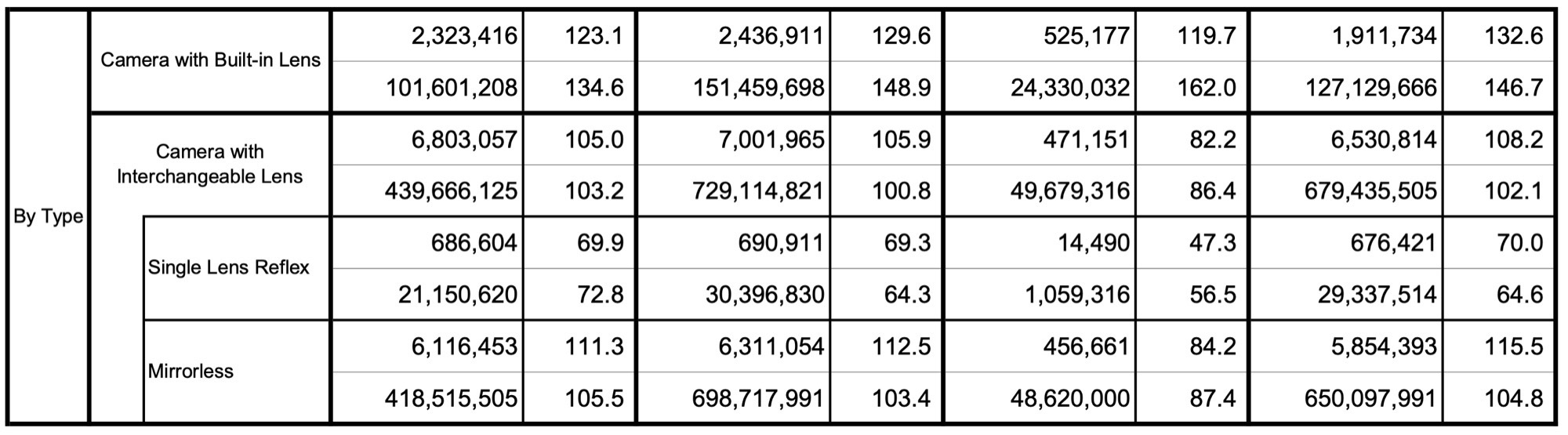 В 2025 году поставки полнокадровых камер выросли на 1,9% по сравнению с предыдущим годом, в то время как продажи камер со сменными объективами и меньшими матрицами увеличились на 8,4%. Европа стала третьим по величине рынком с 2,11 миллионами продаж, уступив лишь Китаю (2,26 миллиона) и США (2,34 миллиона). Показатели продаж выросли во всех регионах. Мировые продажи фотокамер не росли два года подряд с 2007 года, хотя остается неясным, сохранится ли эта тенденция в 2026 году, учитывая сложный экономический климат и продолжающийся кризис DRAM