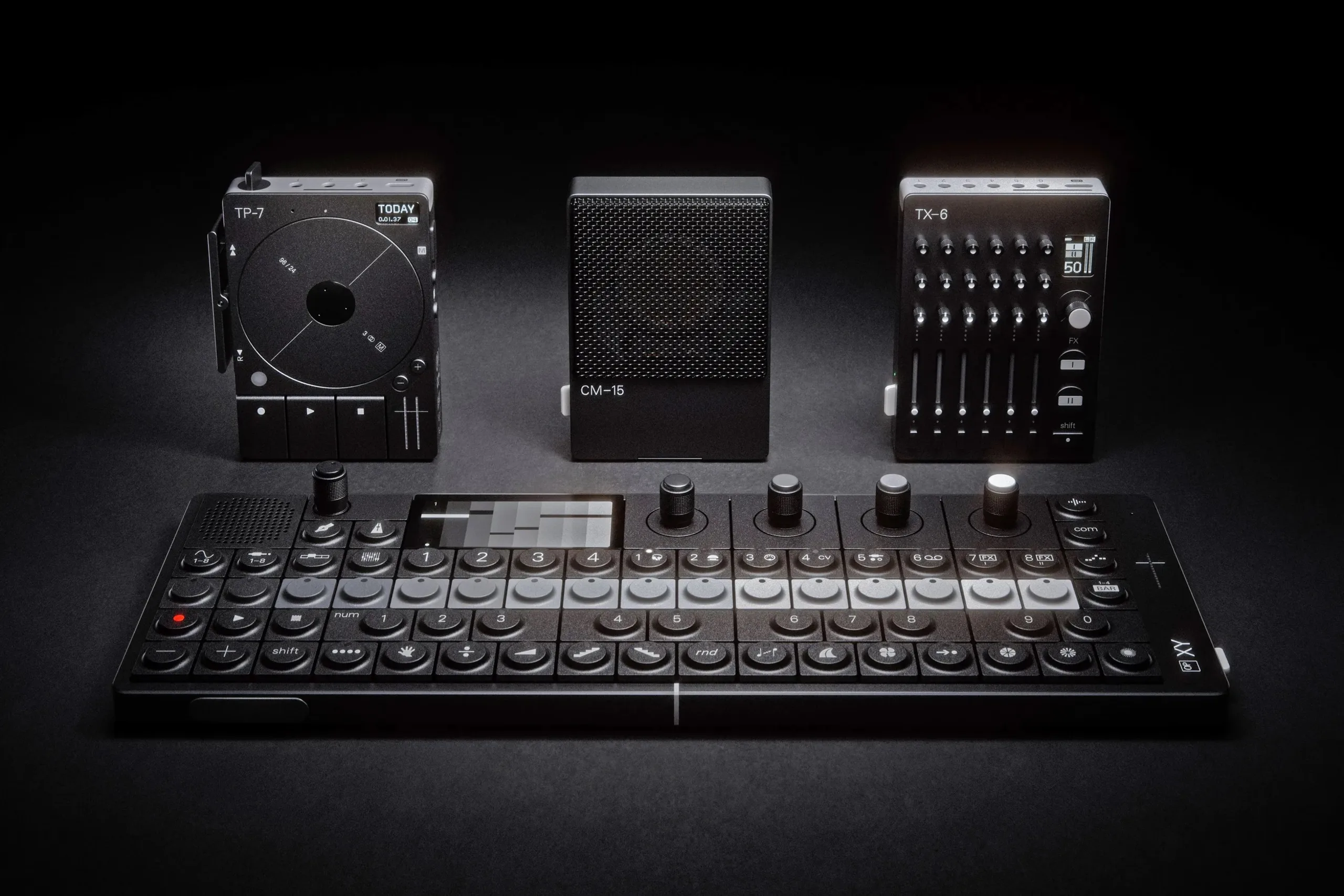 Компания объявила о выпуске новой текстурированной матово-черной отделки для трех устройств: рекордера TP-7, конденсаторного микрофона CM-15 и микшера TX-6. Новая расцветка идеально сочетается с недавно выпущенным синтезатором-сэмплером-секвенсором OP-XY (цена $2 299 на Amazon)