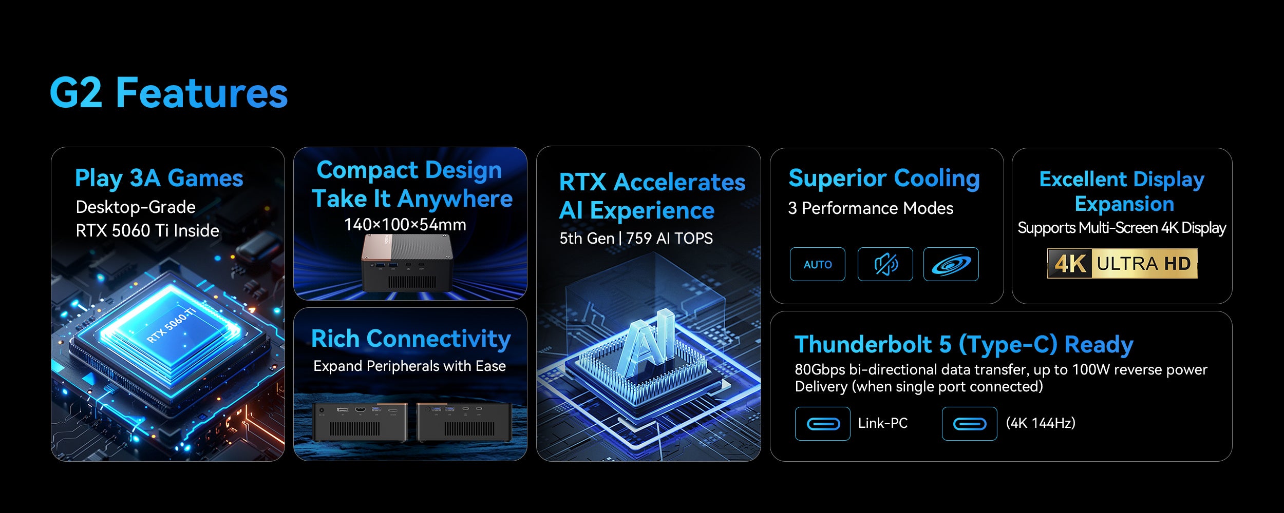 Компактный процессор Nvidia RTX 5060 Ti 16GB eGPU выходит на рынок с интерфейсом Thunderbolt 5 и OCuLink