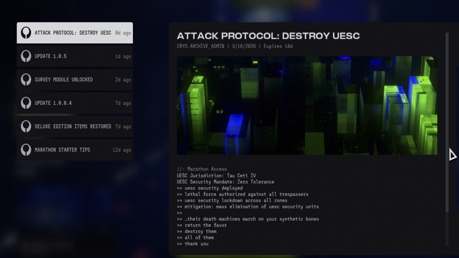 Крупное обновление Marathon 1.0.5 добавляет криоархив, эксфильтрацию сбитых людей и изменения в пользовательском интерфейсе