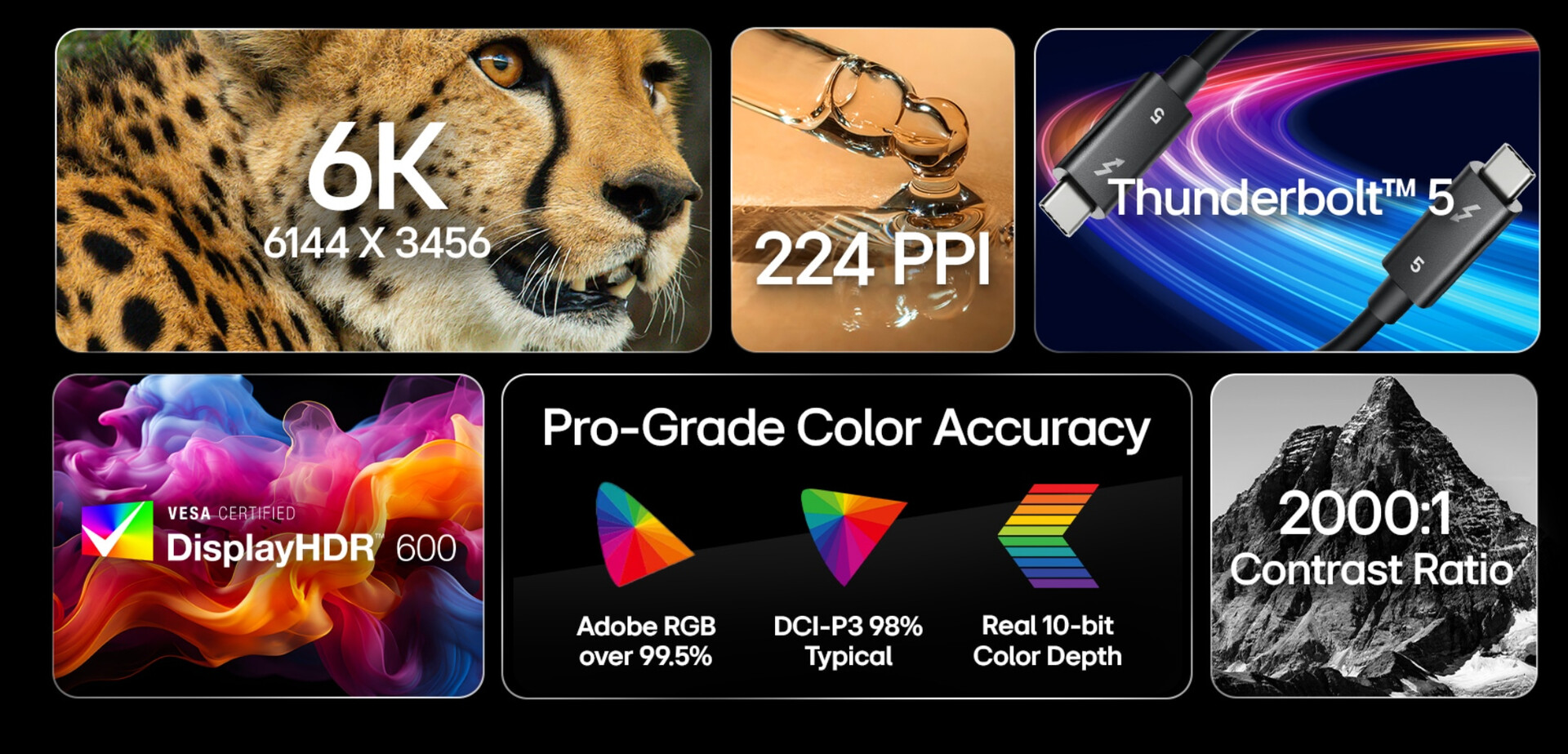 Похожий на Apple Studio Display (сейчас на Amazon стоит $1 699), UltraFine 32U990A выводит изображение с разрешением 6 144 x 3 456 пикселей на 31,5-дюймовую IPS-панель, обеспечивая плотность пикселей 224 PPI. Кроме того, монитор обеспечивает 98% покрытия цветового пространства DCI-P3 и 99,5% AdobeRGB при пиковой яркости 450 нит SDR и 600 нит HDR. К сожалению, LG ограничивает частоту обновления монитора 60 Гц, что часто характерно для профессиональных мониторов, где точность изображения ценится больше, чем его скорость.