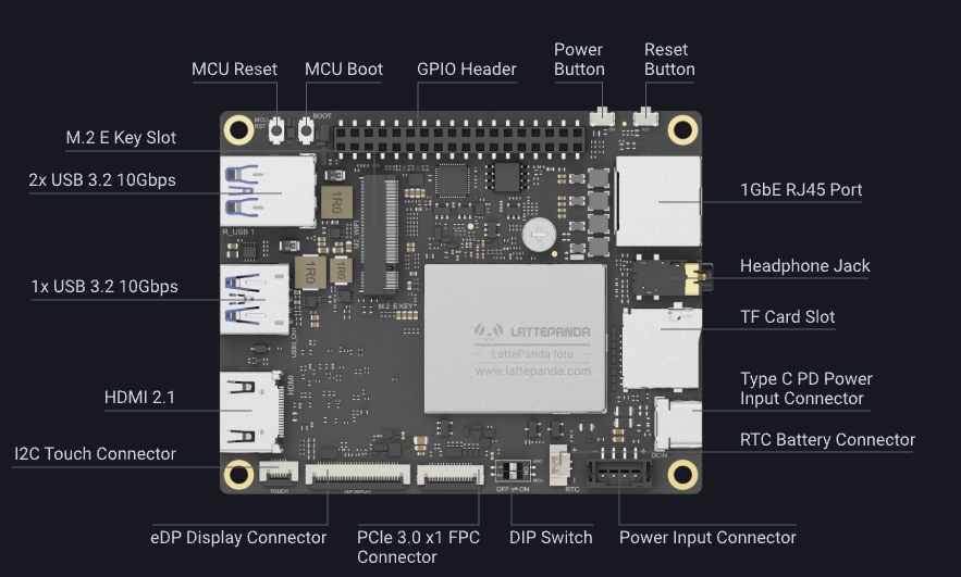 При размерах 88 мм на 70 мм LattePanda IOTA лишь немного больше, чем Raspberry Pi, но при этом обладает впечатляющим набором IO.