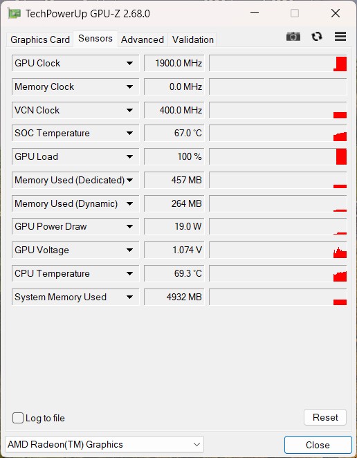 Ninkear S14 нагревается немного больше, чем некоторые сопоставимые модели, такие как Acer Aspire 14, при повседневном использовании, например, при работе в Интернете или с офисными приложениями. Под нагрузкой температура немного повышается, но остается значительно ниже критических значений. Охлаждение обеспечивается одной тепловой трубкой в сочетании с вентилятором. В стресс-тесте Ryzen 5 7535HS ненадолго достигает температуры около 84,5 °C (184,1 °F), но остается в пределах, указанных AMD.