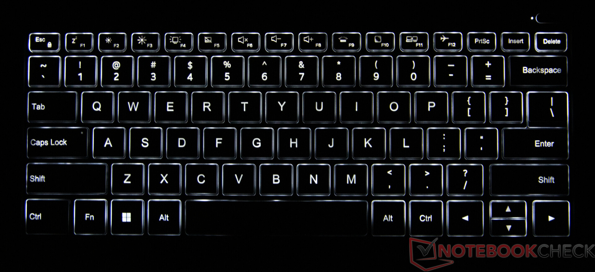 Клавиатура Ninkear S14 обеспечивает точное и приятное ощущение упругости, что положительно сказывается на поведении при наборе текста. Из-за особенностей конструкции клавиши со стрелками вверх и вниз расположены только на половинной высоте, но к этому можно привыкнуть. Устройство поставляется только с раскладкой QWERTY, которая также имеет двухступенчатую подсветку. Производитель прилагает наклейки для других языковых раскладок, но они ухудшают общий вид.