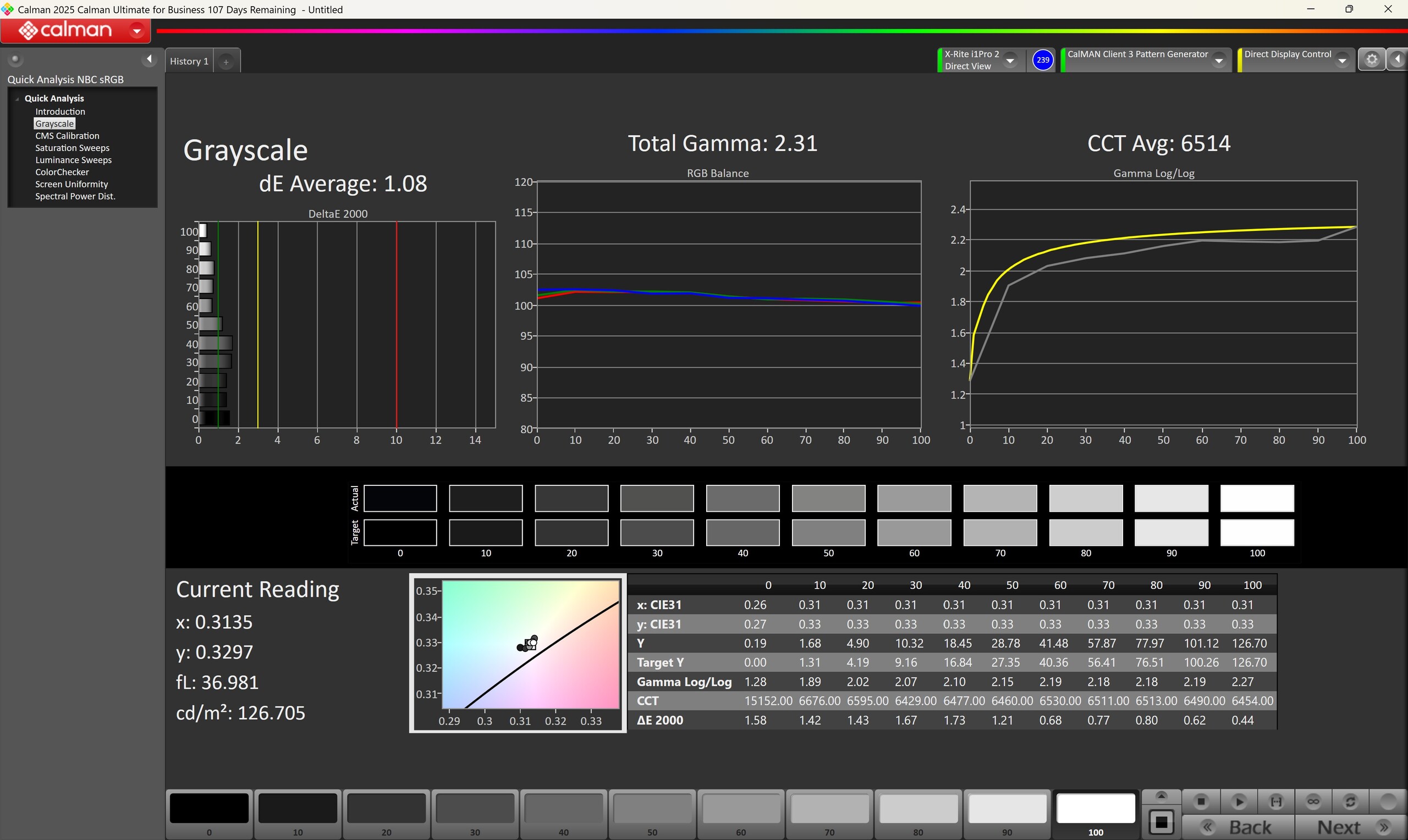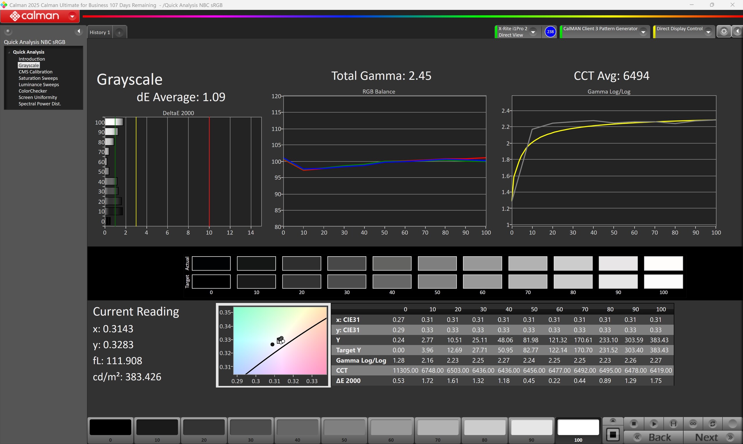 ΔE Greyscale Calman: 1.09 | ∀{0.09-98 Ø5}