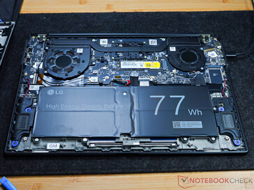LG Gram Pro 16Z90TS оснащен аккумулятором емкостью 77 Втч, который рассчитан на длительное время работы. В наших тестах устройство показало впечатляющее время работы - почти 20 часов веб-серфинга по Wi-Fi.